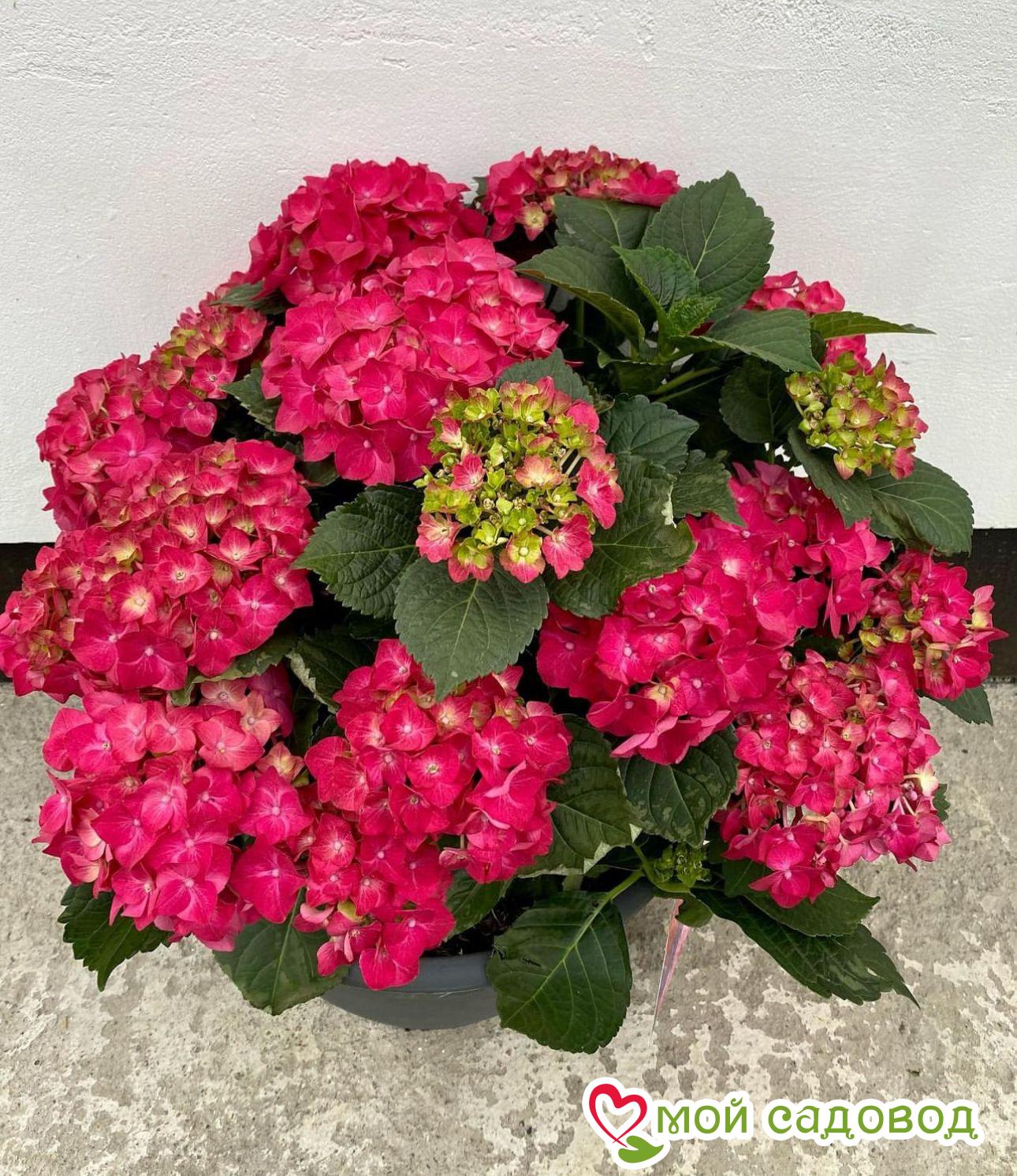 Куст около 80-100 см в высоту, соцветия 15 см в диаметре. Цветки красные, при высокой кислотности почвы с фиолетовым оттенком. Крупные яркие шапки украшают растение с июля до сентября. Для цветения необходимо сохранять прошлогодние побеги. Куст пышный, побеги не полегают от тяжести крупных цветочных шапок. Требует укрытия на зиму.